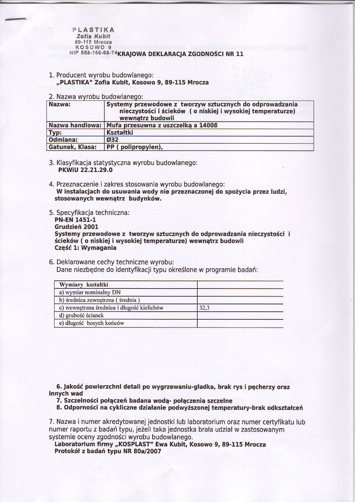 7. Nazwa i numer akredytowanej jednostki lub laboratorium oraz