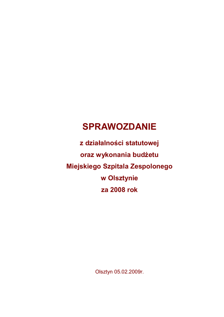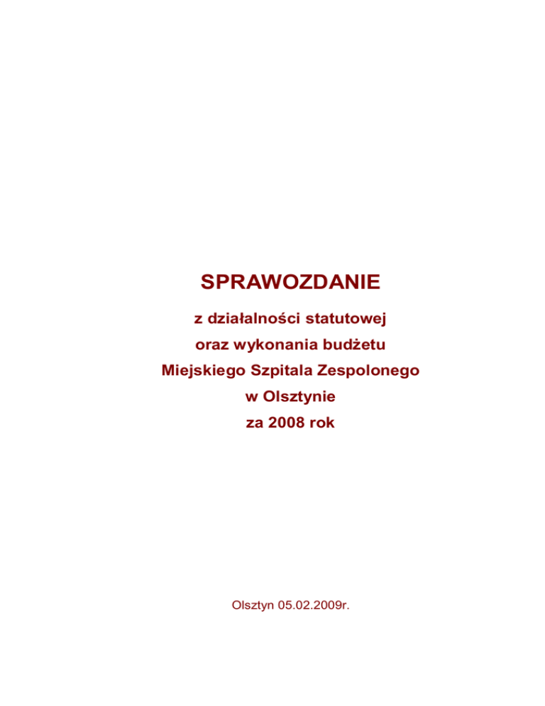 Sprawozdanie za 2008 r. - Miejski Szpital Zespolony w Olsztynie