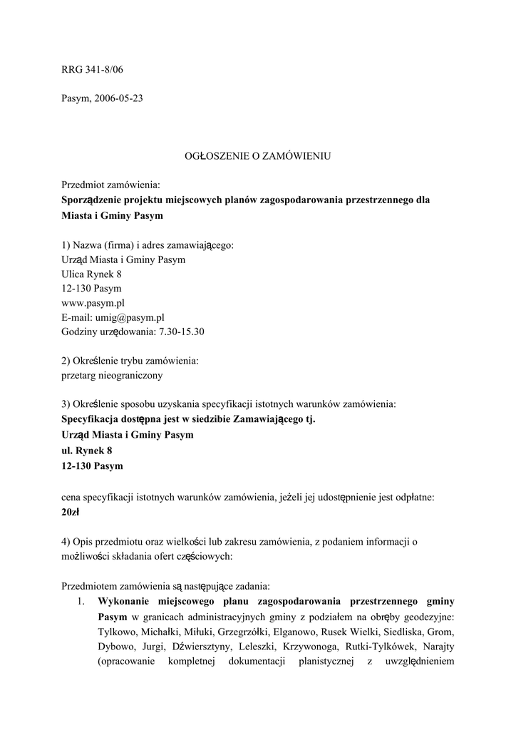 RRG 341-8/06 Pasym, 2006-05-23 OG OSZENIE O ZAMÓWIENIU Ł
