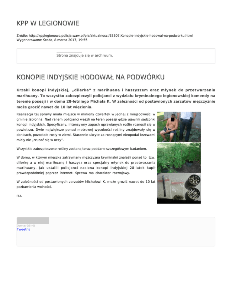 KPP W LEGIONOWIE KONOPIE INDYJSKIE HODOWAŁ NA