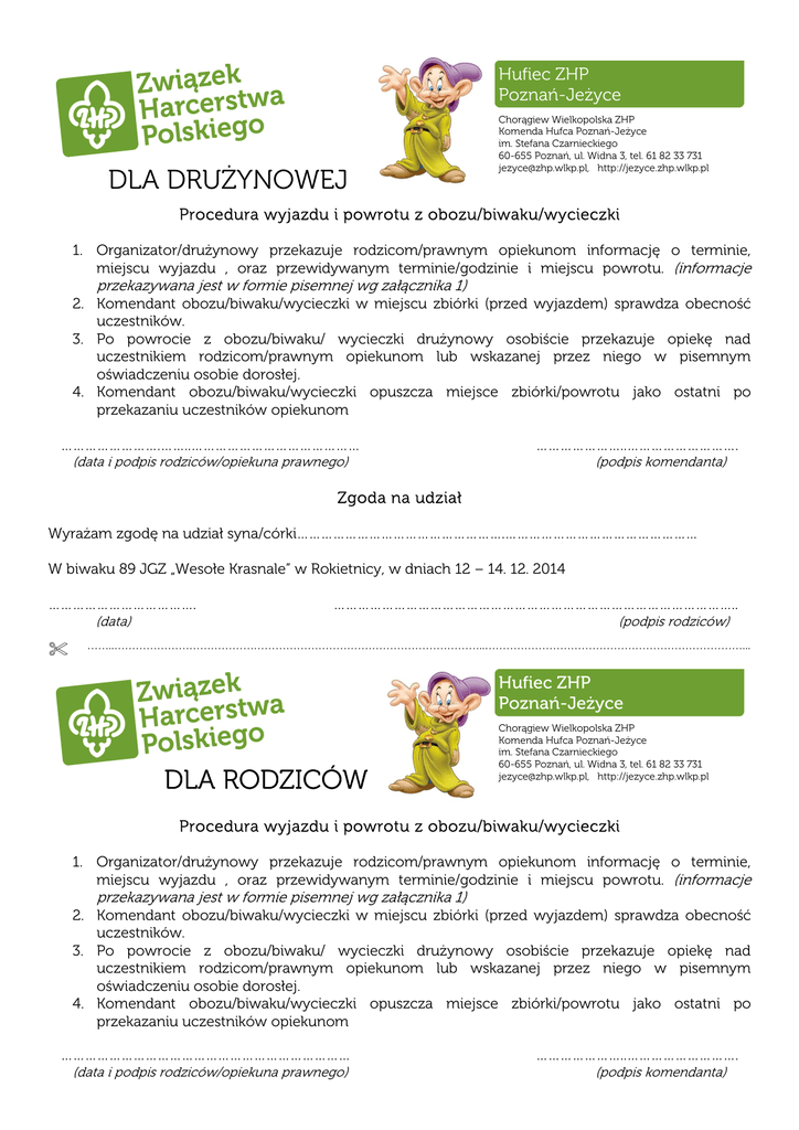 zgoda na biwak - Wesołe Krasnale - Hufiec ZHP Poznań