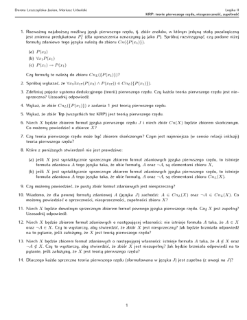 6. Niech X będzie zbiorem formuł języka pierwszego rzędu J i niech zbiór Cn(X) będzie zbiorem skończonym.