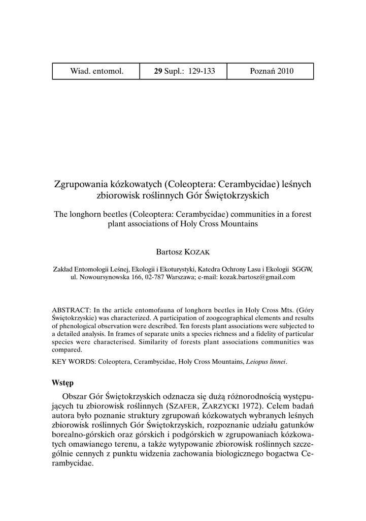 Zgrupowania kózkowatych (Coleoptera: Cerambycidae) leśnych