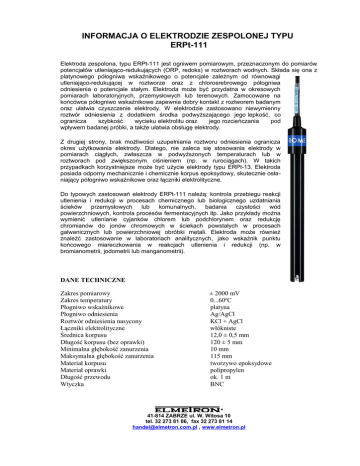 INFORMACJA O ELEKTRODZIE ZESPOLONEJ TYPU ERPt-111