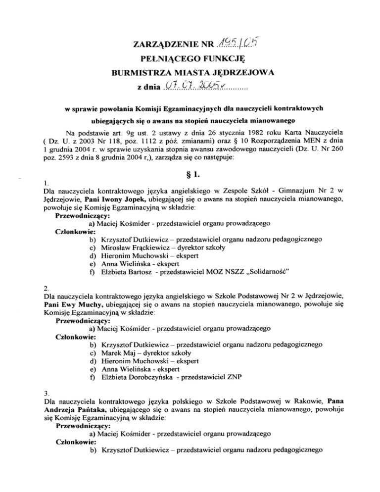 Andrzeja Pañtak¿, ubiegajqcego sig o awans na stopieú nauczyciela mianowanego, powoluje