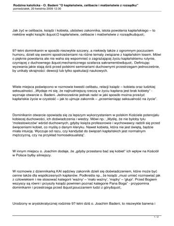 Rodzina katolicka - O. Badeni "O kapłaństwie, celibacie i