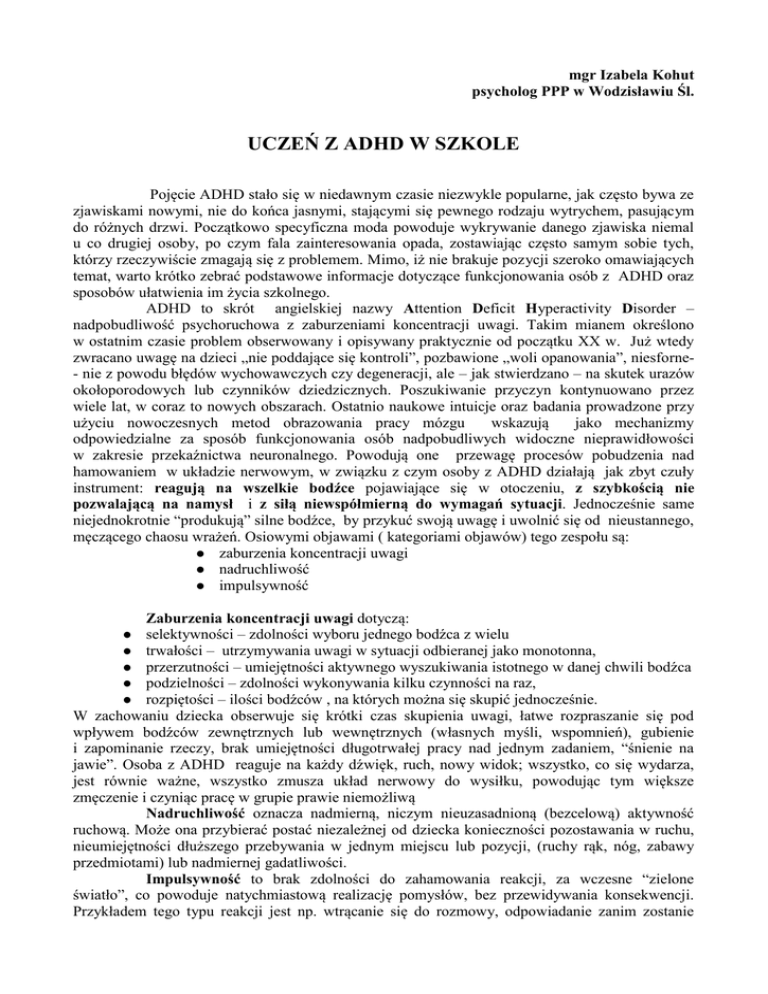 uczeń z adhd w szkole - Poradnia Psychologiczno