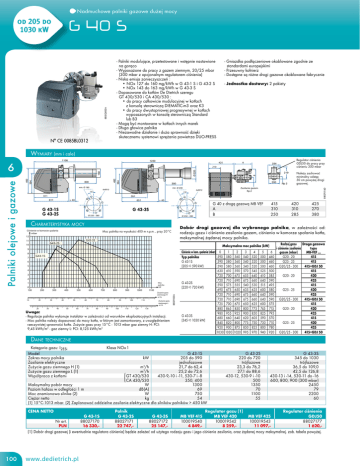 16 330,22 747,25 147,- 4 849,8 259,11 097,1 620,(1) Dobór drogi gazowej (i ewentualnie regulatora ciśnienia) będzie zależeć od użytego rodzaju gazu i jego ciśnienia zasilania, oraz żądanej mocy maksymalnej. zob. tabela powyżej.