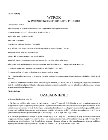 WYROK UZASADNIENIE - Sąd Okręgowy w Toruniu