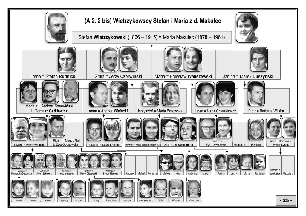 (A 2. 2 bis) Wietrzykowscy Stefan i Maria z d. Makulec Stefan Wietrzykowski (1866 – 1915) = Maria Makulec (1878 – 1961) Irena = Stefan Rudnicki Zofia = Jerzy Czerwiński I. II. Maria = I. Andrzej Czerwiński II. Tomasz Gątkiewicz I. Marta = Paweł Wenclik Mateusz = Agnieszka Dębowska Witold Julian Anna = Andrzej Bielecki I. Piotr = I. Magda Gail II. Ewa Ogonowska Gabriela = Albert śukowski Hanna Karolina = Jakub Macewicz Ignacy Zuzanna = David Shasha Natalia = Paweł Olszewski Antoni Jerzy Matylda = Benois Marteau Franciszek Maria = Bolesław Waliszewski Krzysztof = Maria Borowska Paweł = Ewa Wojciechowska Andrzej Gustaw Michał Romana Aleksander Lidia Nina Wanda Piotr = Barbara Wilska Hubert = Maria Onyszkiewicz Zofia = Andrzej Morstin Mathew Janina = Marek Duszyński Antonina Charlotte Tomasz = Ewa Chrzanowska Maria Janina Magdalena Jerzy Marta ElŜbieta Stanisław Alina Katarzyna = Paweł Łysak Karolina = Jacek Wąs Magdalena - 25 -