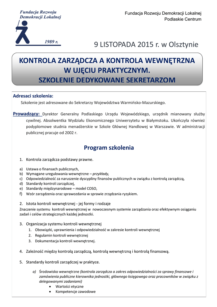 Pobierz pełną ofertę szkolenia - Fundacja Rozwoju Demokracji
