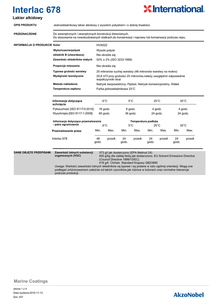 Techniczne karty katalogowe są dostępne na naszych stronach internetowych www.international-marine.com lub www.international-pc.com i powinny być