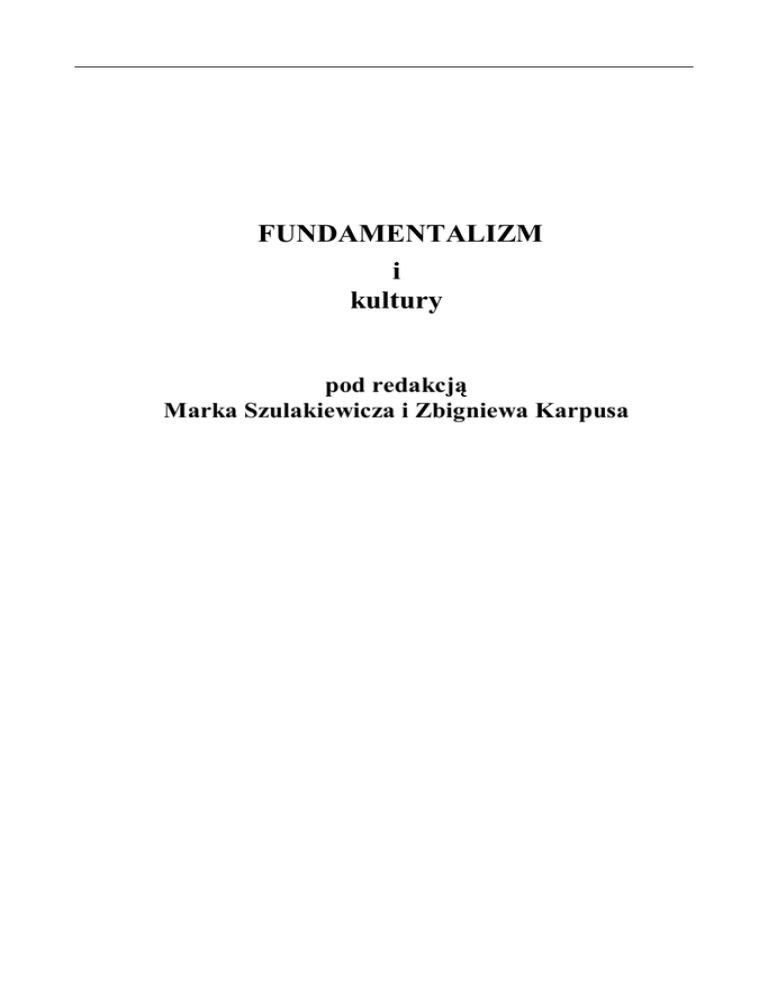 FUNDAMENTALIZM i kultury - Katedra Teorii Kultury i Religii