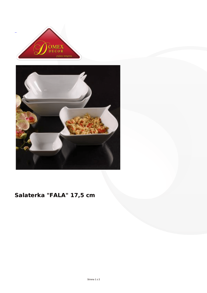 Salaterka "FALA" 17,5 cm Strona 1 z 2 Praktyczne i oryginalne naczynia do dipów - salaterki "FALA" Można je dowolnie łączyć z innymi, aby stworzyć świetne wyposażenie kuchni. Dzięki nim prozaiczne posiłki zyskują niezwykły czar. Naczynie jest praktyczne i stylowe zarazem, dlatego ucieszy niejednego fana sztuki kulinarnej. Salaterki można używać w mikrofalówce, są przystosowane do mycia w zmywarkach. Strona 2 z 2