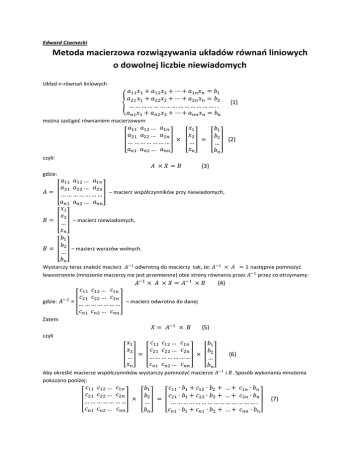Metoda macierzowa rozwiązywania układów równań liniowych o