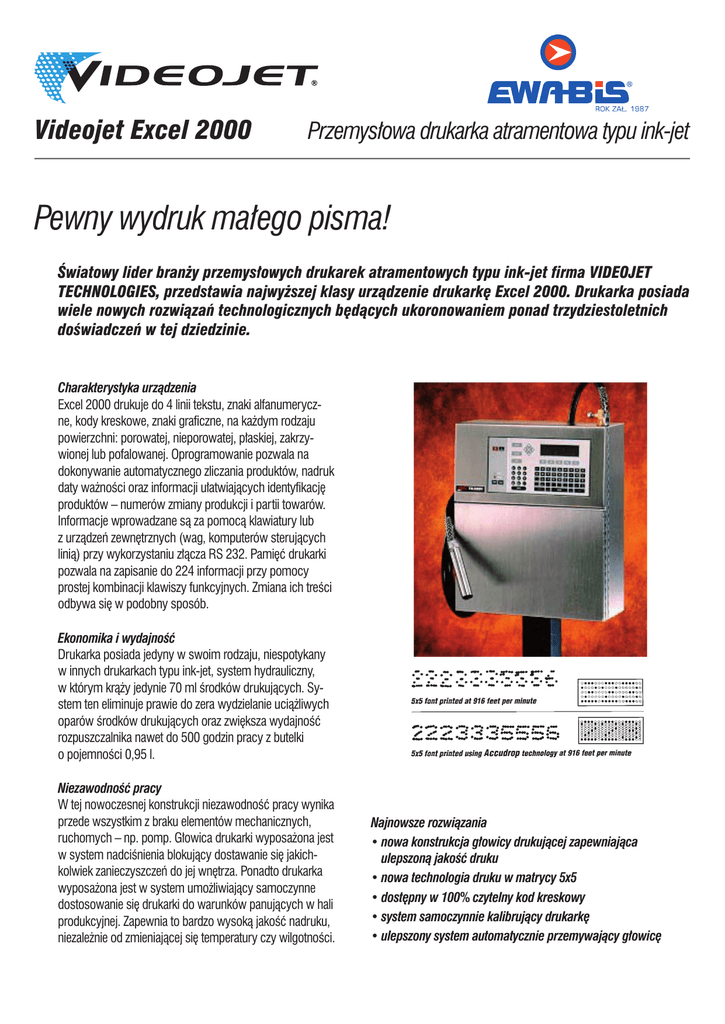Videojet Excel 2000 Przemysłowa drukarka