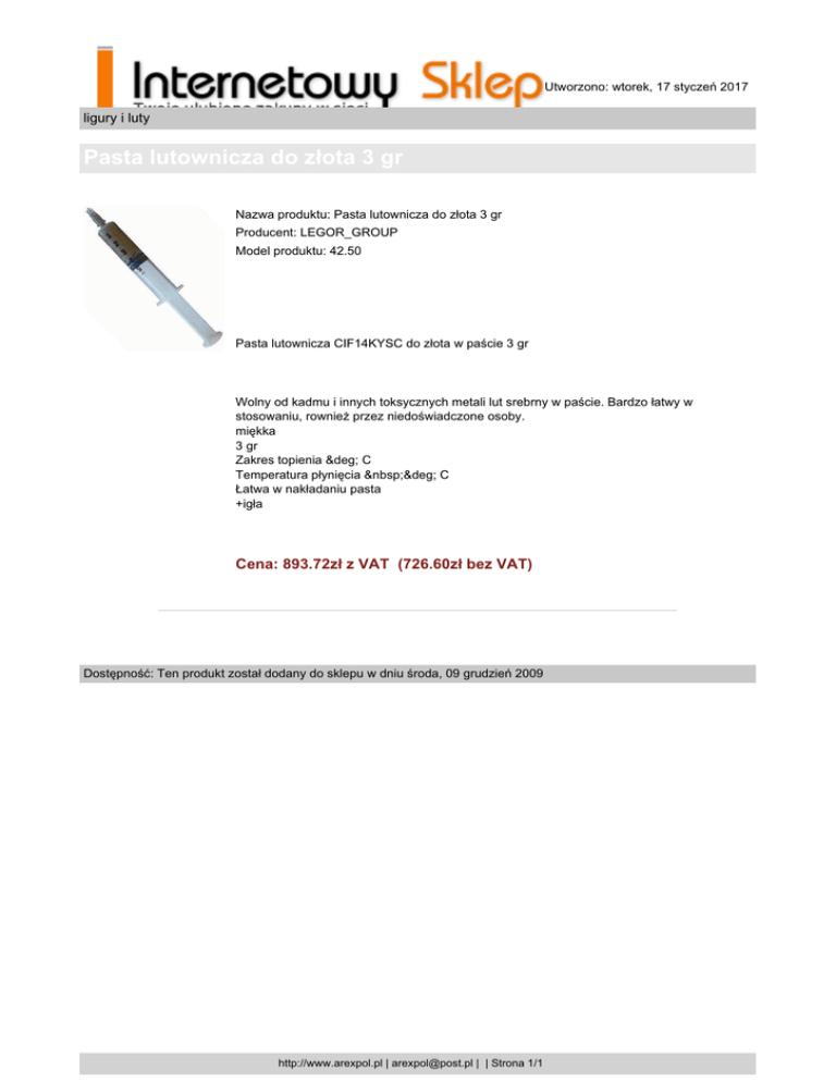 Pasta lutownicza do z³ota 3 gr - Arex-Pol