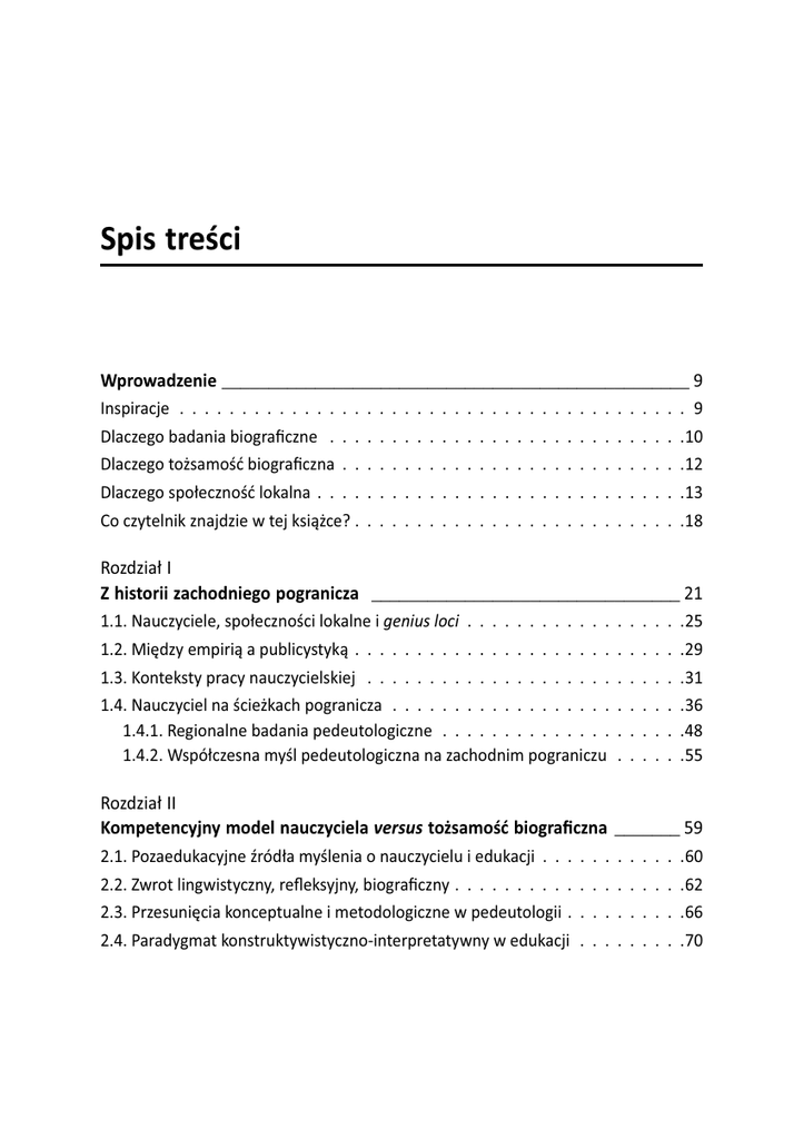 Spis treści Wprowadzenie __________________________________________________ 9 Inspiracje . . . . . . . . . . . . . . . Dlaczego badania biograficzne . . . Dlaczego tożsamość biograficzna . . Dlaczego społeczność lokalna . . . . Co czytelnik znajdzie w tej książce? . . . . . . . . . . . . . . . . . . . . . . . . . . . . . . . . . . . . . . . . . . . . . . . . . . . . . . . . . . . . . . . . . . . . . . . . . . . . . . . . . . . . . . . . . . . . . . . . . . . . . . . . . . . . . . . . . . . . . . . . . . . . . . . 9 .10 .12 .13 .18 Rozdział I Z historii zachodniego pogranicza _________________________________ 21 1.1. Nauczyciele, społeczności lokalne i genius loci . . . . . . . . . . . . 1.2. Między empirią a publicystyką . . . . . . . . . . . . . . . . . . . . . 1.3. Konteksty pracy nauczycielskiej . . . . . . . . . . . . . . . . . . . . 1.4. Nauczyciel na ścieżkach pogranicza . . . . . . . . . . . . . . . . . . 1.4.1. Regionalne badania pedeutologiczne . . . . . . . . . . . . . . 1.4.2. Współczesna myśl pedeutologiczna na zachodnim pograniczu . . . . . . . . . . . . . . . . . . . . . . . . . . . . . . .25 .29 .31 .36 .48 .55 Rozdział II Kompetencyjny model nauczyciela versus tożsamość biograficzna _______ 59 2.1. Pozaedukacyjne źródła myślenia o nauczycielu i edukacji . . . 2.2. Zwrot lingwistyczny, refleksyjny, biograficzny . . . . . . . . . . 2.3. Przesunięcia konceptualne i metodologiczne w pedeutologii . 2.4. Paradygmat konstruktywistyczno-interpretatywny w edukacji . . . . . . . . . . . . . . . . . . . . . . . . . . . . . . . . .60 .62 .66 .70 6 Biograficzna tożsamość nauczycieli. Historie z pogranicza Rozdział III O metodach biograficznych i metodologii badań własnych _____________ 73 3.1. Narracyjny wywiad biograficzny F. Schützego . . . . . . . . . . . 3.2. Teoretyczne zakorzenienie metody . . . . . . . . . . . . . . . . 3.3. Postępowanie badawcze . . . . . . . . . . . . . . . . . . . . . . 3.3.1. Przeprowadzenie i nagranie wywiadu . . . . . . . . . . . . 3.3.2. Transkrypcja, analiza, interpretacja, pytania uzupełniające 3.3.3. Weryfikacja i przedstawienie wyników badań . . . . . . . . 3.4. Pytania badawcze . . . . . . . . . . . . . . . . . . . . . . . . . . 3.5. Teren, dobór uczestników, organizacja i przebieg badań . . . . . 3.6. Praca nad materiałem empirycznym . . . . . . . . . . . . . . . . . . . . . . . . . . . . . . . . . . . . . . . . . . . . . . . . . . . . . . . . . . . . . . . . . . . . . . . . . . . . . . . .78 .82 .83 .84 .85 .87 .87 .89 .94 Rozdział IV Narracyjne interpretacje tożsamości biograficznej ____________________ 97 4.1. Życie jako metafora Strażnicy, rebeliantki, primadonny i mrówki robotnice . . . . . . . . 4.2. Tożsamość znieważona . . . . . . . . . . . . . . . . . . . . . . . . . . 4.3. Dramat nie-uznania . . . . . . . . . . . . . . . . . . . . . . . . . . . . 4.4. Nauczyciele versus imigranci . . . . . . . . . . . . . . . . . . . . . . . 4.4.1. Czesława: Zdarli… zabrali… obdarli ze wszystkiego… . . . . . . . 4.4.2. Antoni: To wszystko trzeba było od nowa. Od nowa… . . . . . . 4.4.3. „Przydział dostałem, nic nie wiedziałem, gdzie to jest…” . . . . . 4.4.4. „Widać było, że ona się tu nie przyjmie…” . . . . . . . . . . . . . 4.5. Złudzenie (auto)realizacji . . . . . . . . . . . . . . . . . . . . . . . . . 4.5.1. Joanna: „Byłam przerażona faktem, że nie usłyszałam prawdziwej mowy polskiej…”. . . . . . . . . . 4.5.2. „Zawsze świeciła mi ta świeczuszka, ja nie muszę, bo ja chcę…” . 4.5.3. „To myśmy wszystko organizowali. Trzeba było” . . . . . . . . . 4.5.4. „Ach było tych zabaw! To tak się liczyło, bo bardziej, można było wpływać…” . . . . . . . . . . . . . . . . 4.6. Tożsamość na pograniczu – „Żałuję, że bardziej interesowały mnie fakty niż ludzie…” . . . . . . . 4.7. Refleksje podsumowujące . . . . . . . . . . . . . . . . . . . . . . . . . . . . . . . . . . . . . . . . . . . . . . . . . . . . .97 . 104 . 106 . 111 . 114 . 120 . 122 . 123 . 124 . . . . 126 . . . . 130 . . . . 133 . . . . 140 . . . . 146 . . . . 147 7 Spis treści Rozdział V Przemiany tożsamości biograficznej _______________________________ 149 5.1. Zawieszenie tożsamości . . . . . . . . . . . . . . . . . . . . . . . . . . . . 5.1.1. Daria: „To było straszne dlatego, że (..) dla mnie to była obca ziemia” 5.2. „Ja-biograficzne” . . . . . . . . . . . . . . . . . . . . . . . . . . . . . . . . 5.2.1. „Ani nie jestem, ani nie mam” . . . . . . . . . . . . . . . . . . . . . . 5.2.2. „Coś się nawarstwia, jak perła i powstaje nowy kształt…” . . . . . . . 5.3. Poza biograficzną pułapkę . . . . . . . . . . . . . . . . . . . . . . . . . . . 5.3.1. „Żyję tak, abym nigdy nie żałowała tego, czego nie zrobiłam…” . . . 5.3.2. „Już słucham tego, co mówią ludzie…” . . . . . . . . . . . . . . . . . 5.3.3. „Tak, będę się odwoływała, bo ta ocena mi się nie podoba!” . . . . . 5.3.4. „Być szczęśliwą, to łączyć życie z marzeniami” . . . . . . . . . . . . . 5.4. Ścieżką biograficznego uczenia się . . . . . . . . . . . . . . . . . . . . . . . . 151 . 153 . 156 . 161 . 166 . 168 . 170 . 172 . 175 . 179 . 180 Zakończenie __________________________________________________ 183 Bibliografia ___________________________________________________ 195 Aneksy ______________________________________________________ 237 Aneks nr 1 Aneks nr 2 Aneks nr 3 Aneks nr 4 Aneks nr 5 Aneks nr 6 Znaki wykorzystane do transkrypcji wywiadów . . . . . . . . . . Odezwa do Młodzieży Pomorza Zachodniego z dn. 17.12.1945 r. . Wywiad z Antonim (fragmenty), 23.07.2002 r. . . . . . . . . . . . Wywiad z Joanną (fragmenty), 20.04.2002 r.. . . . . . . . . . . . Wywiad z Czesławą (fragmenty), 10.07.2002 r. . . . . . . . . . . . Wywiad z Darią (fragmenty), 30.01.2002 . . . . . . . . . . . . . . . . . . . . . 239 . 240 . 241 . 2
