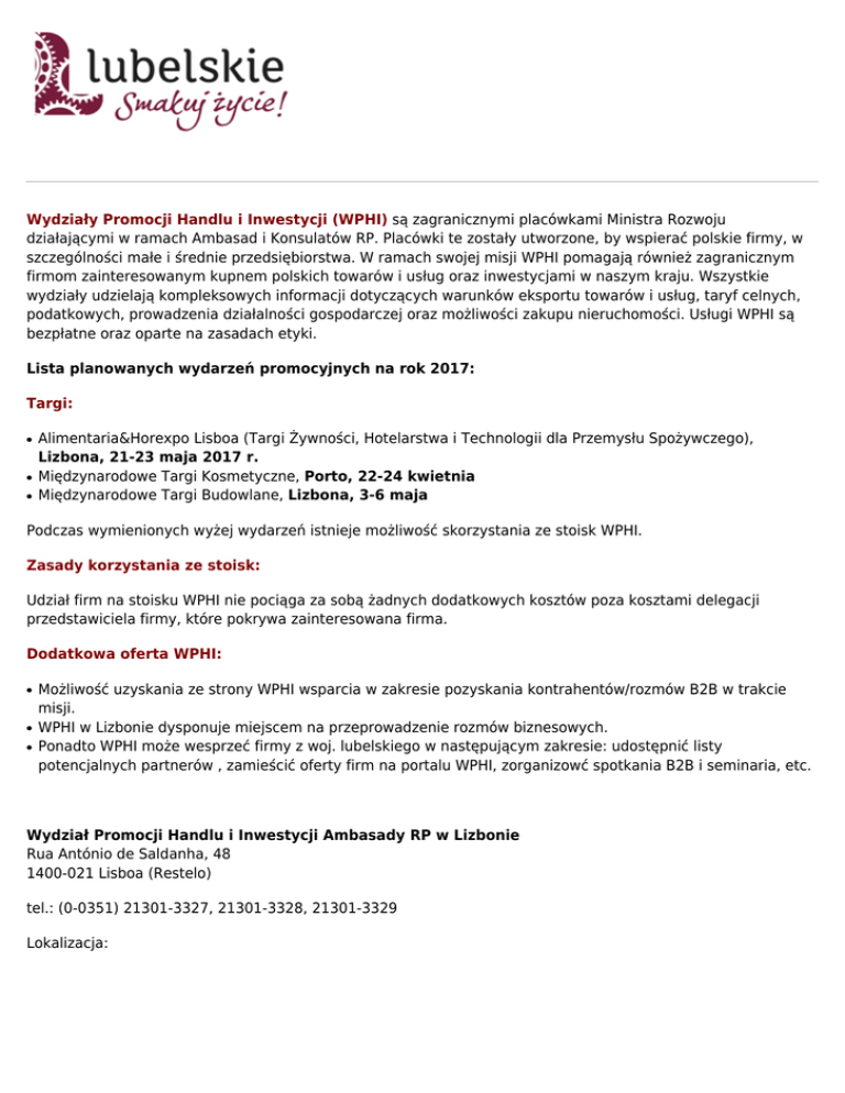 Wydział Promocji Handlu i Inwestycji Ambasady RP w Lizbonie