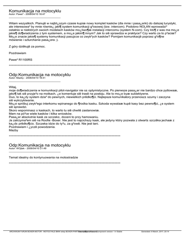 Komunikacja na motocyklu Odp:Komunikacja na - Boxer