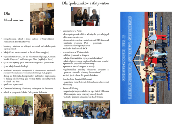 Dla Społeczników i Aktywistów Dla Naukowców - przygotowanie, udział i liczne sukcesy w Wojewódzkich Konkursach Przedmiotowych - konkursy wiedzowe na różnych szczeblach od szkolnego do ogólnopolskich - lekcje i koła zainteresowań w formie laboratoryjnej - wycieczki tematyczne, np. do Planetarium Śląskiego, Centrum Nauki „Kopernik”, na Uniwersytet Śląski (wykłady z fizyki) - cykliczne wykłady prof. Boczarowskiego oraz podróżnika - żywe lekcje historii, biologii - możliwość rozwijania umiejętności i zainteresowań naukowych poprzez wykorzystanie nowoczesnych technologii ICT, poprzez dostęp do Internetu, komputerów, rzutników, nagłośnienia w każdej sali lekcyjnej, jak również tablic interaktywnych w salach i na holu - spotkania z pisarzami - Centrum Informacji Naukowej z dostępem do Internetu - udział w programie Szkoła Odkrywców Talentów - uczestnictwo w PCK: • kwesty do puszek, zbiórki odzieży dla potrzebujących • kiermasze świąteczne • impreza integracyjna z mieszkańcami DPS Zameczek • realizacja programu PCK – promocja zdrowia i zdrowego stylu życia • udział w konkursach PCK - uczestnictwo w Wolontariacie: • zbiórki żywności w sklepach • akcja „Gimnazjalista czyta przedszkolakom” • akcja „Dziewczynka z zapałkami”(pakowanie towarów) • pomoc dla przytuliska dla zwierząt • pomoc w nauce kolegom ze szkoły • ogólnopolskie projekty edukacyjne związane z prawami człowieka Amnesty International, • dzień gier i zabaw dla przedszkolaków - Szkolne Koło Przyjaciół Zwierząt • organizacja Dnia Zwierząt, zbiórka karmy dla zwierząt • konkursy - Samorząd Szkolny • organizacja imprez szkolnych, np. Dzień Chłopaka, Dzień kapcia, akcje charytatywne, dyskoteki • udział w pracach Młodzieżowej Rady Miasta Dla Artystów - koło teatralne „Trapez” - występy grupy teatralnej na miejskich imprezach: Wielka Orkiestra Świątecznej Pomocy, Mikołajki, Obchody patrona Miasta Lublińca itp. - zespół wokalny - zajęcia artystyczne - kółko fotograficzne - bardzo dobrze wyposażona sala artystyczna - wyjazdy na musicale do Warszawy - wycieczki do teatru i obiektów kultury - konkursy plastyczne i muzyczne - profesjonalny sprzęt nagłaśniający i scena ze światłami - radiowęzeł prowadzony przez uczniów Dla Językowców - klasa profilowana językowo z rozszerzonym językiem angielskim (warunkiem otwarcia grupy jest liczebność 14 osób) - język rosyjski i francuski w ramach kół zainteresowań - wyjazdy na przedstawienia i filmy w językach obcych - wycieczki zagraniczne - współpraca z Instytutem Goethego i ambasadami - Powiatowy Konkurs „Śpiew łączy Europę” - Dni Językowe - czytanie literatury i prasy w oryginale - udział w międzynarodowych projektach: Comenius, E-Twinning, Asystentura Comeniusa - wieczory filmowe – filmy anglo i niemieckojęzyczne - dodatkowe godziny j. niemieckiego w ramach mniejszości narodowej - biblioteczka anglojęzyczna Dla Sportowców - klasy profilowane sportowo: • piłka ręczna dziewcząt i chłopców • piłka nożna dziewcząt i chłopców • piłka siatkowa dziewcząt i chłopców • piłka koszykowa dziewcząt i chłopców - grupa Cheerliderek - prestiżowe konkursy sportowe, m.in. Coca Cola Cup - zawody, rozgrywki, turnieje, konkursy, mecze sparingowe - profesjonalne zaplecze sportowe: 2 hale sportowe, Fitness Club, pobliski „Orlik” i „Skate park” - wyjazdy na pełnometrażowe lodowisko - udział w lokalnych imprezach sportowych: Bitwa szkół, Bieg o nóż komandosa, Bieg niepodległości - „Biała szkoła” – oferta wyjazdu na narty lub snowboard - udział w projekcie „SZKOŁA profesjonalnych drużyn) KIBICUJE” (wyjazdy na mecze