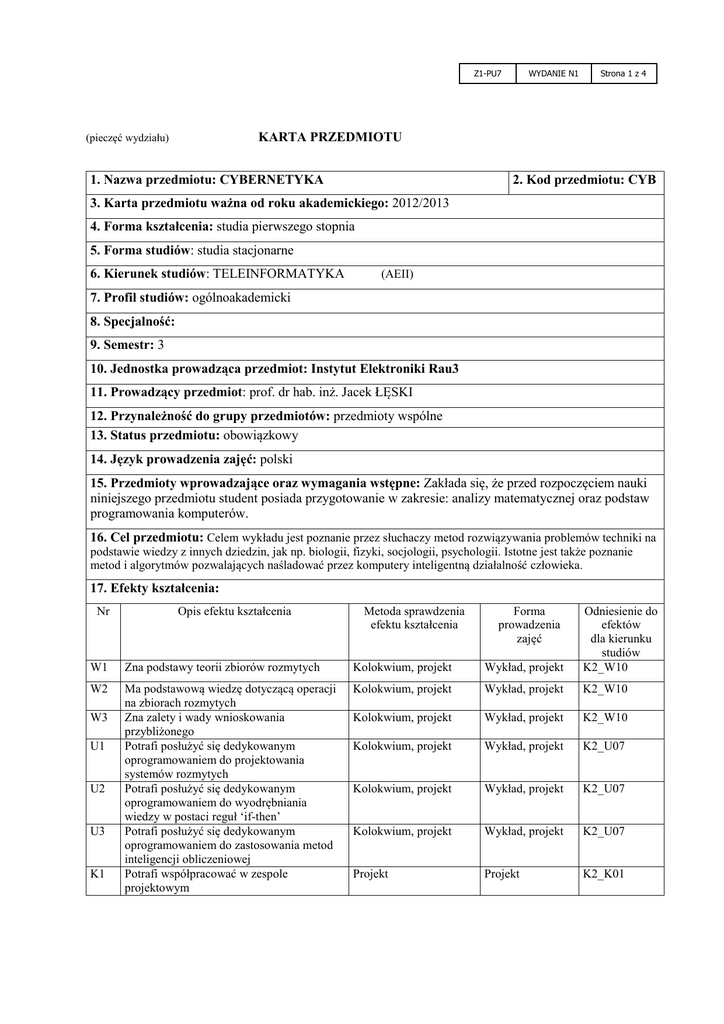 Karta przedmiotu CYB 2012