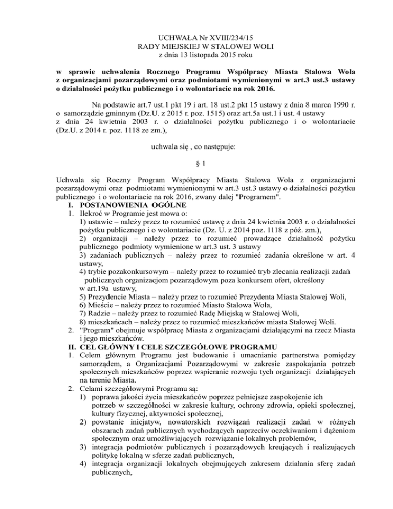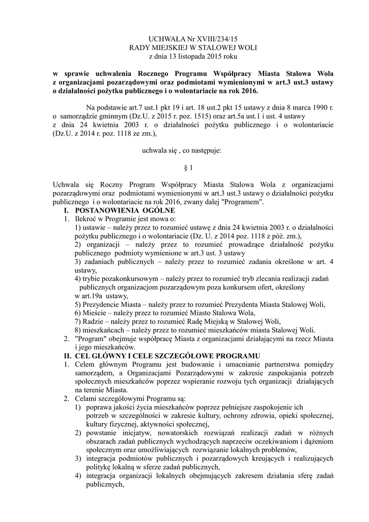 UCHWAŁA Nr XVIII/234/15 RADY MIEJSKIEJ W STALOWEJ WOLI z