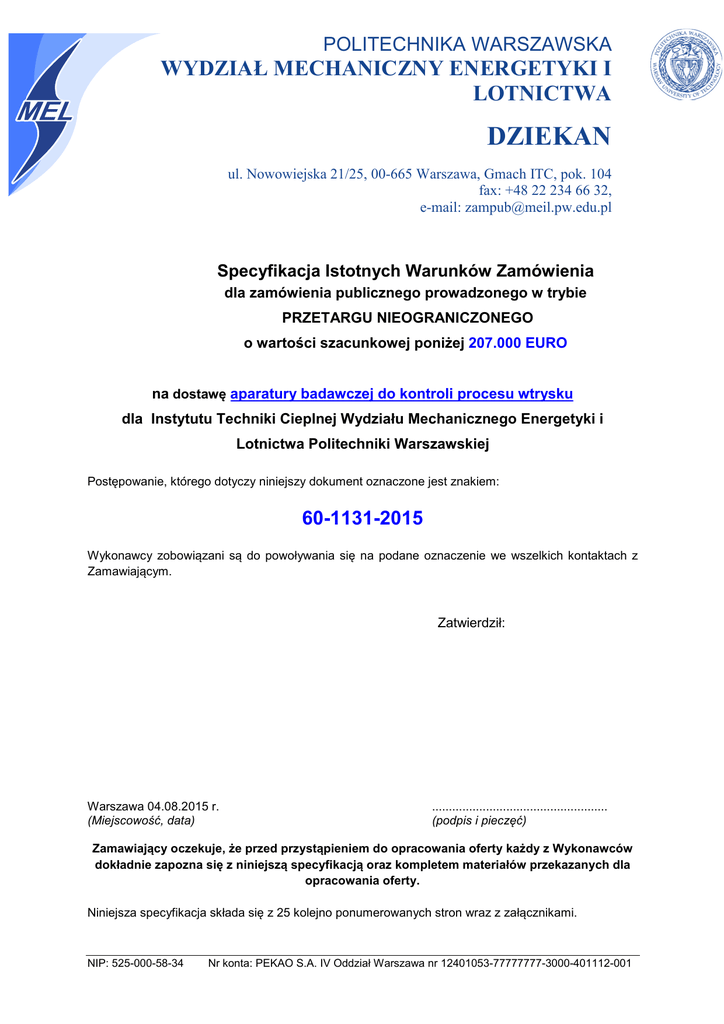 SIWZ - MEiL - Politechnika Warszawska