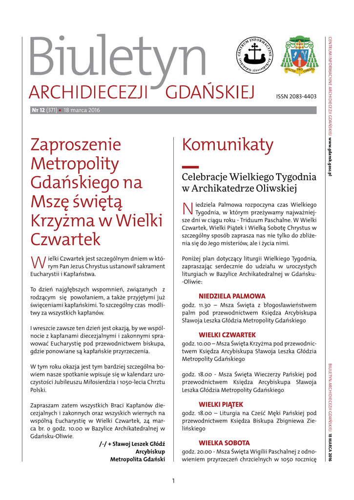 Biuletyn Archidiecezji Gdańskiej 12/2016