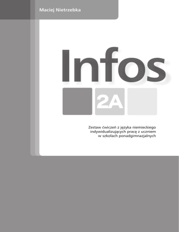Maciej Nietrzebka Infos 2A Zestaw ćwiczeń z języka niemieckiego indywidualizujących pracę z uczniem w szkołach ponadgimnazjalnych 1 Infos 2A Zestaw ćwiczeń z języka niemieckiego indywidualizujących pracę z uczniem w szkołach ponadgimnazjalnych Pearson Central Europe Sp. z o.o. ul. Jana Olbrachta 94 01-102 Warszawa www.pearson.pl Copyright © Pearson Central Europe 2013 Pierwsze wydanie 2013 Prowadzenie i opracowanie projektu: Maciej Nietrzebka Rysunki: Janusz Baszczak, Jacek Krajewski, Ewa Olejnik, Dominik Redmer Projekt graficzny: Beata Krajewska (Studio Gardengraf) Projekt okładki: Beata Krajewska (Studio Gardengraf) Skład: Studio BELLE-AMI Spis treści Wstęp ................................................................................................................. 5 Rozdział 1 – Reisen ............................................................................................ 7 infrastruktura turystyczna • nazwy etapów wyjazdu wakacyjnego • nazwy aktywności podczas wakacji • formy niezadowolenia z pobytu w bazie noclegowej • nazwy elementów krajobrazu Rozdział 2 – Personen ..................................................................................... 10 nazwy garderoby • nazwy kolorów • określenia służące do opisu cech charakteru i wyglądu osób • określenia służące do wyrażenia zdania na temat ubioru Rozdział 3 – Essen ........................................................................................... 13 nazwy artykułów spożywczych, owoców i warzyw • zwroty oznaczające wagę i ilość • nazwy rodzajów sklepów • nazwy sztućców i naczyń kuchennych • nazwy czynności związanych z przygotowywaniem potraw • nazwy określające smak • nazwy lokali gastronomicznych Rozdział 4 – Lebensschritte . ........................................................................... 16 określenia etapów w życiu człowieka • określenia aktywności w różnych okresach życia • modele rodzin • określenia służące do opisu wydarzeń rodzinnych (ślub / wesele) • skróty używane w ogłoszeniach mieszkaniowych • określenia związane z wynajmowaniem mieszkania • nazwy typów domów Klucz odpowiedzi ............................................................................................ 19 Notatki ............................................................................................................. 20 3 Wstęp Zestawy ćwiczeń Infos 2A umożliwiają indywidualizację nauki języka niemieckiego w szkołach po nadgimnazjalnych i są przeznaczone zarówno do pracy pod kierunkiem nauczyciela, jak również do samodzielnej pracy w domu. Proponowane ćwiczenia wspomagają i urozmaicają pracę nie tylko z uczniem, u którego stwierdzono występowanie specyficznych trudności w czytaniu i pisaniu, tzw. dysleksję rozwojową, ale również można je wykorzystać na lekcji powtórzeniowej przed pracą klasową z danego rozdziału lub potraktować jako formę poprawy sprawdzianu. Publikacja zawiera cztery zestawy ćwiczeń, a każdy zestaw odpowiada danemu rozdziałowi z podręcznika do nauki języka niemieckiego dla szkół ponadgimnazjalnych Infos 2A. Materiał językowy obejmuje słownictwo oraz wyrażenia i zwroty, które uczeń znajdzie na końcu każdego rozdziału podręcznika Infos 2A w sekcjach Nützliche Wendungen oraz Wortschatzkiste. W ćwiczeniach wykorzystano różnorodne techniki pracy nad powtórzeniem i utrwaleniem materiału leksykalnego. Należą do nich m.in. krzyżówki, rebusy, łączenie wyrazów i ilustracji, szukanie rymów, grupowanie słów wokół pojęcia nadrzędnego, eliminowanie słów niepasujących do pozostałych, podkreślanie i zakreślanie wybranych elementów. Do wszystkich zestawów zostały przygotowane klucze odpowiedzi znajdujące się na końcu publikacji. Zespół Pearson 5