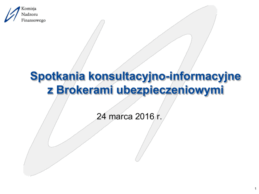 Spotkania konsultacyjno-informacyjne z Brokerami ubezpieczeniowymi 24 marca 2016 r. 1 Zezwolenia na wykonywanie działalności brokerskiej - statystyka • 1296 zezwoleń w zakresie ubezpieczeń • 42 zezwolenia w zakresie reasekuracji 2 Zezwolenia na wykonywanie działalności brokerskiej Osoby fizyczne Osoby prawne Razem Wszyscy brokerzy 843 495 1338 Brokerzy ubezpieczeniowi 833 463 1296 Brokerzy reasekuracyjni 10 32 42 3 Zezwolenia na wykonywanie działalności brokerskiej - statystyka w okresie 01.01.2016 – 01.03.2016: • wydano 11 zezwoleń dla osób fizycznych w zakresie ubezpieczeń • wydano 17 zezwoleń dla osób prawnych w zakresie ubezpieczeń • wydano 3 zezwolenia dla osób prawnych w zakresie reasekuracji 4 Zezwolenia na wykonywanie działalności brokerskiej - statystyka w okresie 01.01.2016 – 01.03.2016: • na wniosek brokera cofnięto 8 zezwoleń na wykonywanie działalności brokerskiej 5 Zezwolenia na wykonywanie działalności brokerskiej – liczba zezwoleń w zakresie ubezpieczeń wydanych w latach 2012-2016 2012 2013 2014 2015 2016 Osoby fizyczne 57 65 57 61 11 Osoby prawne 52 44 35 67 17 Razem 109 109 92 128 28 6 Zezwolenia na wykonywanie działalności brokerskiej – liczba zezwoleń w zakresie reasekuracji wydanych w latach 2012-2016 2012 2013 2014 2015 2016 Osoby fizyczne 1 3 2 1 0 Osoby prawne 5 4 2 6 3 Razem 6 7 4 7 3 7 Egzaminy brokerskie w zakresie ubezpieczeń - statystyka 2012 2013 2014 2015 2016 Ogółem osoby przystępujące do egzaminu 567 548 497 468 125 Osoby ze zdanym egzaminem brokerskim 339 335 370 393 17 8 Egzaminy brokerskie w zakresie reasekuracji - statystyka 2012 2013 2014 2015 2016 Ogółem osoby przystępujące do egzaminu 35 13 19 7 6 Osoby ze zdanym egzaminem brokerskim 19 10 18 5 5 9 Osoby posiadające zdany egzamin brokerski • osoby posiadające zdany egzamin brokerski: 5188 osób • osoby wykonujące czynności brokerskie/pracownicy: 2602 osoby 10 Osoby posiadające zdany egzamin brokerski ustawa z dnia 9 maja 2014 r. o ułatwieniu dostępu do wykonywania niektórych zawodów regulowanych (Dz. U. z 2014 r. poz. 768): • od wejścia w życie wydano 219 zezwoleń • w 19 przypadkach skorzystano z deregulacji (8,8% wydanych zezwoleń) • łącznie z deregulacji skorzystało 81 osób 11 Rejestr brokerów - typowe problemy • 7 dni na złożenie wniosku w sprawie zmiany w rejestrze brokerów ubezpieczeniowych • typowe zaniedbania: OC, nieaktualne informacje o osobach wykonujących czynności brokerskie, dane adresowe, nieaktualny skład zarządu 12 Rejestr brokerów - typowe problemy ustawa deregulacyjna: zwolnienie z warunku zdania egzaminu brokerskiego: • doświadczenie zawodowe • uznany przez Komisję kierunek studiów typowe nieporozumienia: • nieodpowiedni profil zatrudnienia • nieodpowiedni okres zatrudnienia • nieuznane przez Komisję studia wyższe 13 Rejestr brokerów - typowe problemy zezwolenie na wykonywanie działalności brokerskiej – typowe braki w dokumentacji: • niepotwierdzone za zgodność z oryginałem kopie dokumentów • nieprawidłowa umowa ubezpieczenia OC • nieodpowiednie doświadczenie zawodowe • nieodróżnianie brokera ubezpieczeniowego od osoby wykonującej czynności brokerskie 14 Kontrola działalności brokerskiej w 2015 roku przeprowadzono 18 kontroli działalności brokerskiej 15 Kontrola działalności brokerskiej - zakres kontroli sprawdzenie zgodności z prawem i zezwoleniem wykonywanej działalności, a w szczególności: • spełnianie warunków wymaganych do uzyskania zezwolenia • umowy „kurtażowe” • czynności brokerskie na rzecz obsługiwanych klientów • zgodność sprawozdania ze stanem faktycznym 16 Kontrola działalności brokerskiej typowe problemy • niekompletna dokumentacja brokerska • zaniedbywanie obowiązków informacyjnych wobec klienta • zatrudnianie do wykonywania czynności brokerskich osób nie spełniających wymogów określonych w art. 28 ust. 3 pkt 1 lit. a-e ustawy o pośrednictwie 17 Kontrola działalności brokerskiej typowe problemy • brak udzielonej na piśmie porady, w oparciu o rzetelną analizę ofert w liczbie wystarczającej do opracowania rekomendacji najwłaściwszej umowy ubezpieczenia • brak pisemnego wyjaśnienia podstaw, na których opiera się rekomendacja • brak pisemnego potwierdzenia przekazania klientowi pisemnej rekomendacji 18 Kontrola działalności brokerskiej typowe problemy • „nadmierne przywiązanie” do jednego zakładu ubezpieczeń, skutkujące brakiem obiektywności • umowy kurtażowe dodatkowo nakładające obowiązki na brokera wobec zakładu ubezpieczeń • niezgodność danych podanych w sprawozdaniu ze stanem faktycznym 19 Kontrola działalności brokerskiej typowe problemy • w 2015 roku wydano 10 decyzji o nałożeniu kary pieniężnej na brokera ubezpieczeniowego • w 2015 roku wydano 15 zaleceń mających na celu dostosowanie działalności brokerskiej do przepisów prawa 20 Sprawozdanie z działalności brokerskiej typowe problemy • • • • nieprawidłowy nr zezwolenia błędna suma gwarancyjna OC błędne informacje o osobach zatrudnionych błędne numery PESEL 21 Sprawozdanie z działalności brokerskiej typowe problemy • podawanie nazw różnego rodzaju podmiotów zamiast nazw zakładów ubezpieczeń, w których lokowane są ryzyka ubezpieczeniowe • mylenie danych aktualnych z danymi historycznymi 22 Skargi na działalność brokerską UKNF interweniuje w sprawach związanych z naruszeniem przepisów prawa, a w szczególności związanych z naruszeniem przepisów ustawy o pośrednictwie ubezpieczeniowym 23 Skargi na działalność brokerską Inne skargi wpływające do UKNF, nie będące we właściwości organu nadzoru: • spory o charakterze cywilno-prawnym • naruszenie zasad konkurencyjności • uzasadnione podejrzenie popełnienia przestępstwa 24