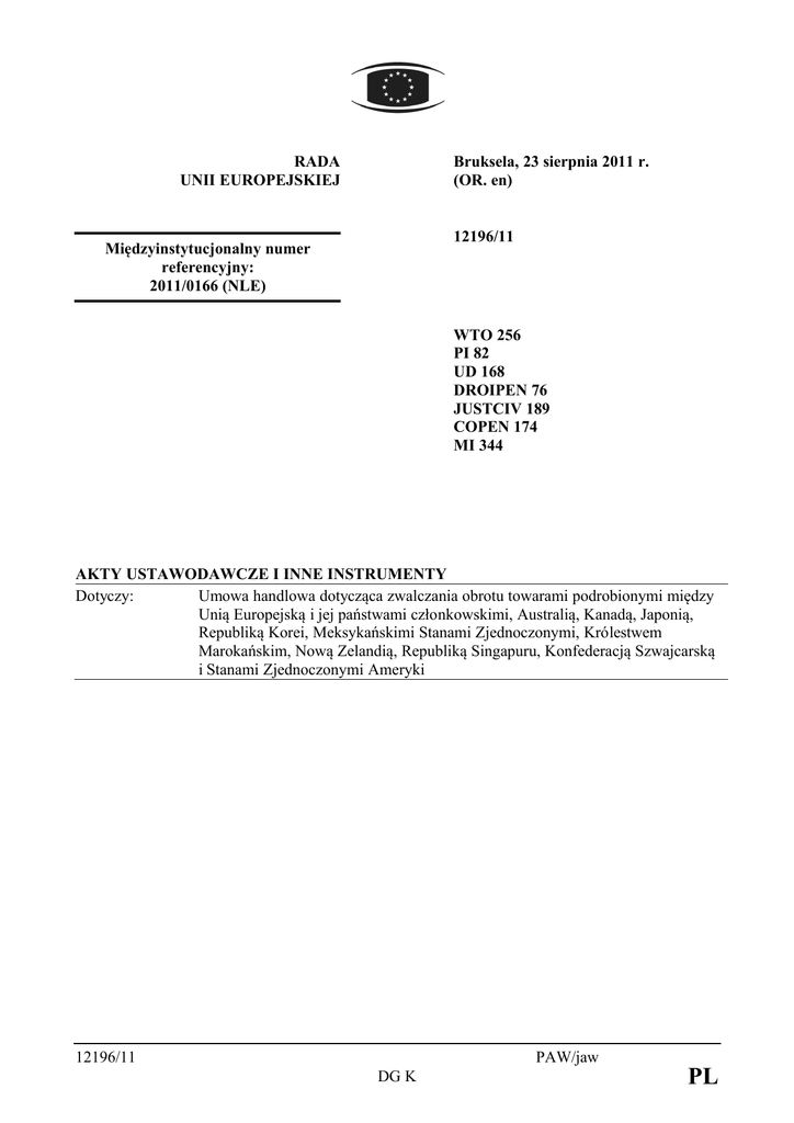 12196/11 PAW/jaw DG K RADA UNII EUROPEJSKIEJ Bruksela, 23