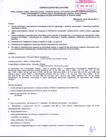 1 . Osoba skladajqca o5wiadczenieobowiqzanajest do zgodnego z prawd4, starannego i zupelnego wypelnienia ka2dejz rubryk.
