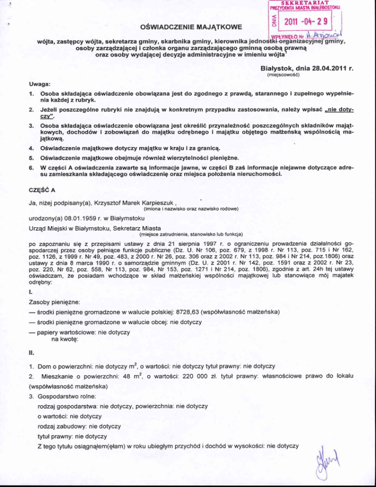 6. W czq6ci A o5wiadczeniazawarte sq informacjejawne, w czg5ci B za5 informacje niejawne dotyczqce adresu zamieszkaniaskladajEcegoo5wiadczenigoraz miejsca polo2enianieruchomo5ci.