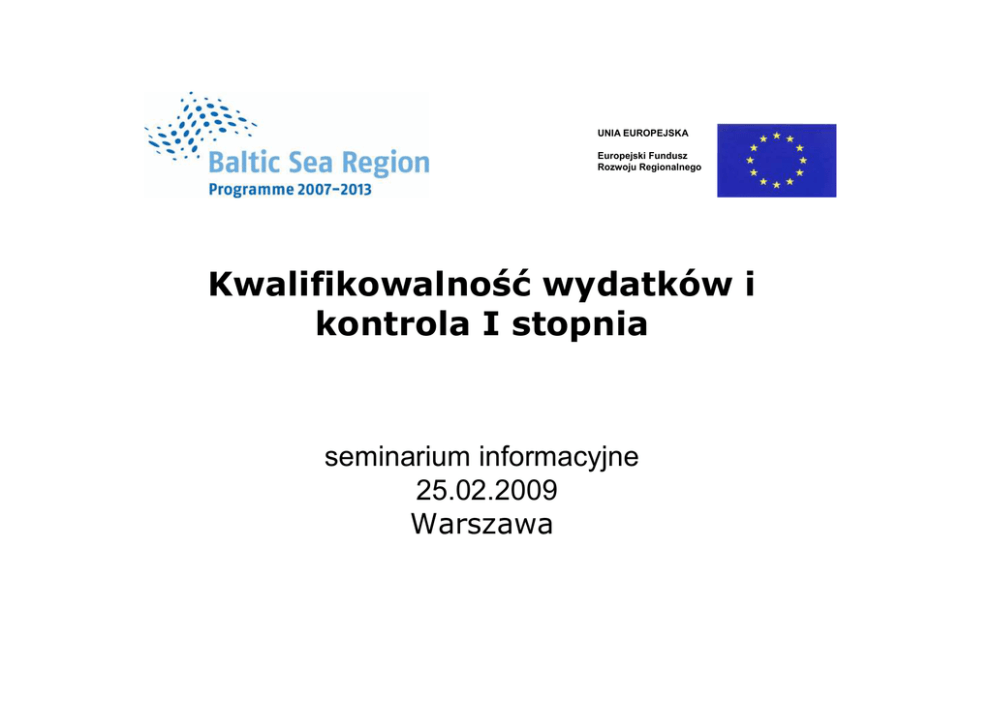 UNIA EUROPEJSKA Europejski Fundusz Rozwoju Regionalnego Kwalifikowalność wydatków i kontrola I stopnia seminarium informacyjne 25.02.2009 Warszawa KONTROLA I STOPNIA Art. 16 ustęp 1 Rozporządzenia (WE) nr 1080/2006 Parlamentu Europejskiego i Rady z dnia 5 lipca 2006 roku w sprawie Europejskiego Funduszu Rozwoju Regionalnego i uchylające rozporządzenie (WE) nr 1783/1999 „W celu zatwierdzenia wydatków kaŜde państwo członkowskie ustanawia system kontroli umoŜliwiający weryfikację dostarczenia produktów i usług stanowiących przedmiot dofinansowania, zasadności wydatków zadeklarowanych dla działań lub ich części wdraŜanych na terytorium danego państwa, jak równieŜ zgodności tych wydatków i związanych z nimi operacji lub ich części z przepisami wspólnotowymi i krajowymi.” KONTROLA I STOPNIA System kontroli I stopnia w Polsce jest mieszany: zdecentralizowany Urzędy Marszałkowskie, Urzędy Wojewódzkie, Ministerstwa i inne urzędy centralne kontrolę I stopnia mogą prowadzić niezaleŜni od wdraŜania projektu kontrolerzy wewnętrzni ww. instytucji. Jest to moŜliwe po uprzednim zatwierdzeniu kontrolera przez MRR na podstawie zamieszczonego na stronie MRR wniosku o zatwierdzenie kontrolera projektu. scentralizowany Pozostałe jednostki korzystają z bezpłatnej kontroli I stopnia wykonywanej przez Władzę WdraŜającą Programy Europejskie. KONTROLA I STOPNIA Elementy systemu kontroli Kontrola administracyjna 100 % wydatków wszystkich projektów Kontrola na miejscu wybrane projekty (analiza ryzyka) KONTROLA I STOPNIA Osoba odpowiedzialna za kontrolę I stopnia przydzielana w momencie wpływu pierwszego rozliczenia Ten sam kontroler przez cały okres realizacji projektu Pierwsze rozliczenie naleŜy przesłać na Panią Sylwię Tyszko, Głównego Księgowego WWPE. Uzupełnienia do pierwszego rozliczenia oraz kolejne rozliczenia naleŜy przesyłać na wyznaczonego kontrolera. Dane adresowe WWPE na końcu prezentacji. NADRZĘDNA ZASADA NALEśYTE ZARZĄDZANIE FINANSAMI (SOUND FINANCIAL MANAGEMENT) Zgodnie z Art. 274 Traktatu ustanawiającego Unię Europejską „Kraje Członkowskie powinny współpracować z Komisją Europejską, aby zapewnić, Ŝe środki publiczne są wydatkowane w zgodzie z zasadą naleŜytego zarządzania finansami” Koncepcja naleŜytego zarządzania finansami = oszczędność + wydajność + skuteczność (economy + efficiency + effectiveness) NADRZĘDNA ZASADA NALEśYTE ZARZĄDZANIE FINANSAMI = 3 x E Economy = zasoby, które instytucja zuŜywa do wykonywania swoich zadań udostępniane są w odpowiednim czasie, w odpowiedniej ilości i jakości oraz po najkorzystniejszej cenie Efficiency = instytucja dąŜy do osiągnięcia jak najlepszego związku pomiędzy zaangaŜowanymi zasobami a osiągniętymi rezultatami Effectivenes = instytucja osiąga wyznaczone cele oraz zaplanowane rezultaty NADRZĘDNA ZASADA ZASADA NALEśYTEGO ZARZĄDZANIA FINANSAMI a USTAWA O FINANSACH PUBLICZNYCH Art.35 Ustawy o finansach publicznych „3. Wydatki publiczne powinny być dokonywane: 1) w sposób celowy i oszczędny, zachowaniem zasady uzyskiwania najlepszych efektów z danych nakładów; 2) w sposób umoŜliwiający terminową realizację zadań; 3) w wysokości w terminach wynikających z wcześniej zaciągniętych zobowiązań.” BUDśET PROJEKTU BudŜet projektu określony w zatwierdzonym Wniosku Aplikacyjnym w podziale na partnerów – kwota globalna budŜetu kaŜdego partnera w części 2.3 Wniosku a budŜet całościowy projektu w podziale na linie budŜetowe i pakiety zadaniowe w części 4.4 Szczegółowy budŜet kaŜdego partnera projektu jest obowiązkowym załącznikiem III do Umowy Partnerstwa BudŜet dzielony na sześciomiesięczne okresy sprawozdawcze (milestone) – w celu planowania płatności oraz monitorowania wdraŜania projektu Plan wydatkowania (Spending plan) środków na poziomie projektu zatwierdzony w części 4.5 Wniosku Aplikacyjnego, a na poziomie partnerów uszczegółowiony w załączniku IV do Umowy Partnerstwa Zasady kwalifikowalności wydatków oraz budŜet projektu zostały określone w Rozdziale 5 Podręcznika Programu Zasady raportowania w ramach projektu zostały określone w Rozdział 10.4 Podręcznika Programu BUDśET PROJEKTU BudŜet projektu dzielony na linie budŜetowe (BL) i pakiety zadaniowe (work packages - WP) Rodzaje work package: WP 0 Przygotowanie projektu (project preparation) predefiniowany nieobowiązkowy WP 1 Zarządzanie projektem i administracja (project management & administration) predefiniowany obowiązkowy WP 2 Komunikacja i informacja (communication & information) predefiniowany obowiązkowy Działania merytoryczne definiowane w projekcie nieobowiązkowe WP 3 – WP 7 BUDśET PROJEKTU Rodzaje linii budŜetowych BL: BL 1 – Personel BL 2 – Usługi zewnętrzne BL 3 – PodróŜe i zakwaterowanie BL 4 – Sprzęt i inwestycje BL 5 – Inne koszty bezpośrednie Linie 2 i 4 są wyspecyfikowane w zatwierdzonym Wniosku Aplikacyjnym wraz z przypisaniem ich do pakietów zadaniowych. Dodatkowo linia budŜetowa 2 podzielona we Wniosku Aplikacyjnym na planowane umowy powyŜej 20.000 EUR i umowy poniŜej 20.000 EUR. BUDśET PROJEKTU Linia budŜetowa nr 1 – Personel Koszty wynagrodzeń pracowników partnera projektu wymienionego oficjalnie we Wniosku Aplikacyjnym bezpośrednio zaangaŜowanych w realizację projektu W tej linii wyłącznie pracownicy zatrudnieni na umowę o pracę Pracownicy zatrudnieni wyłącznie do realizacji projektu lub częściowo do realizacji projektu Nie wolno raportować kosztów wynagrodzenia pracowników partnera zatrudnionych na podstawie umów innych niŜ umowa o pracę! BUDśET PROJEKTU Linia budŜetowa nr 1 – Personel Kalkulacje kosztów osobowych w oparciu o rzeczywiste stawki wynagrodzenia danej osoby za godzinę roboczą w danym miesiącu (wynagrodzenie za dany miesiąc/liczba godzin roboczych w danym miesiącu) Kalkulacje kosztów osobowych w oparciu o ewidencję 