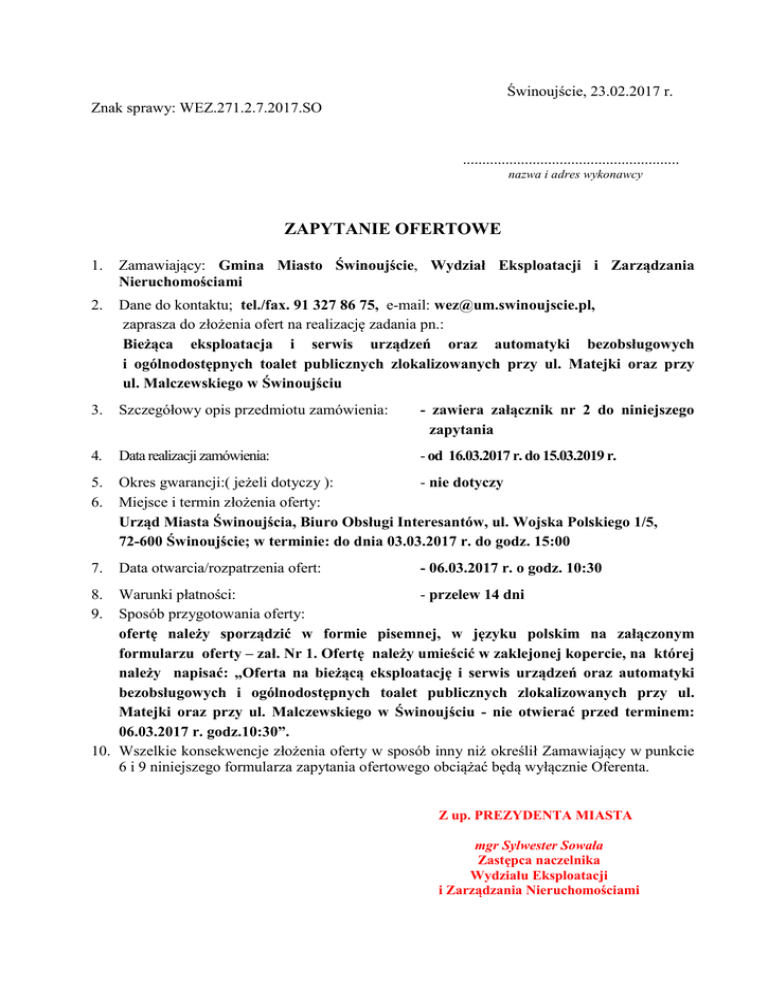 zapytanie ofertowe - Urząd Miasta Świnoujście