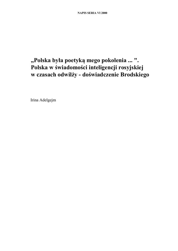 NAPIS SERIA VI 2000 „Polska była poetyką mego pokolenia ... ". Polska w świadomości inteligencji rosyjskiej w czasach odwilży - doświadczenie Brodskiego Irina Adelgejm 'H APIS Seria VI 2000 Irina Adelgejm „Polska była poetyką mego pokolenia...”. Polska w świadomości inteligencji rosyjskiej w czasach odwilży — doświadczenie Brodskiego ażda periodyzacja w pewnym stopniu jest wynikiem umowy. Wychodząc z tego zało żenia, co mamy uważać za przełom? Czy wydarzenia z konkretną datą? Czy też proces historyczny, którego linie ogólne, osiągające pewną „masę krytyczną”, dają się zauważyć tylko na przestrzeni czasu? W jaki więc sposób powiązać ze sobą odwilż początku lat sześćdziesiątych i wydarzenia lat 1989-1990, a także czas stagnacji, mówiąc z rosyjska: „zastoju” pomiędzy nimi, przeciw stawny przełomowi nawet semantycznie? Przecież zupełnie oczywiste jest, że psychologicznie przełom dojrzewał właśnie w tam tym czasie. Czy można mówić o dwóch punktach, określających ten czas, jako o dwóch przełomach? A może w przyszłości będą one oznaczały początek i koniec jednego okresu, w którym powstały określone formy współistnienia dwu kultur? Jeśli rozpatrywać współ działanie tych kultur jako formę współistnienia Polski i Rosji w ciągu pięciu ostatnich dziesięcioleci, to właśnie ono poprzedziło przełom i prowadziło do niego. Mówiąc więc K o formach współistnienia podczas odwilży, musimy przekroczyć ścisłe ramy tego okresu. Sam model stosunku do Polski w tym okresie ma kilka poziomów. Po pierwsze, fakty empiryczne, które tworzą realność współistnienia i współdziałania. Po drugie, psychologia odrębnych grup, stanowiących naród (i państwo) oraz poszczególnych ludzi, tworzących kulturę: określone impulsy i motywy wytwarzają określone formy zachowania się, w których realnie przejawia się współistnienie. Dalej — odzwierciedlenie tych stanów w języku — utrwalenie ich w formułach postaw (stereotypach o różnym zabarwieniu emocjonalnym) oraz głębszych i z trudem ustalanych śladów wpływów i przeżytych wrażeń. 268 Irina Adelgejm Nie wiem, kto i kiedy wprowadził do obiegu pojęcie „mit polski” i jego synonim „polonomania”, ale za pomocą tych właśnie terminów przyjęto określać jedną z charakterystycz nych cech życia duchowego na początku lat sześćdziesiątych. Niedawno jeden z naszych historyków literatury pisał: Opisując historię pokolenia tak zwanych szestidiesiatników, pamiętać się będzie oczywiście o polonomanii tamtych czasów. Trudno tu obejść się bez ironii — że to niby Europa dla biednych — ale czy warto? Przecież nie z ekstrawagancji prawie cała generacja pasjonowała się wtedy Polską. Wtedy zaczęło się odejście od skamieniałych norm, poszła do góry żelazna kurtyna i zarysowały się szcze liny w monolicie. Przyczyniła się do tego moskiewska premiera filmu Wajdy Popiół i diament, książka wierszy Różewicza czy też nowa alegoria Lema. Albo ostatnie opowiadanie Hłaski, nawet jeżeli znano je raczej ze słyszenia. Faktów i wrażeń, które powiększały te szczeliny, było oczywiście znacznie więcej: ekscy tacja Polską była dla tego czasu czymś w rodzaju — używając słów Osipa Mandelsztama — „skradzionego powietrza”. Ci, którzy doświadczyli tej ekscytacji, ci, którzy na przykład bez niczyjej pomocy uczyli się języka polskiego, żeby przeczytać coś, co jeszcze długo nie będzie wydane wjęzyku rosyjskim, albo byli gotowi o każdej porze jechać do jakiegoś domu kultury, gdzieś „u diabła za rogatką”, gdzie często na jedynym seansie jednego tylko dnia można było obejrzeć „nieposłuszny” film Andrzeja Wajdy czyJerzego Kawalerowicza— ci wszyscy wcale nie uważali siebie za „zakładników” mitu. Oczywiście, że nie mit, lecz żywe i znaczące uczucie podyktowało Bułatowi Okudżawie ton jego Podróży po nocnej Warszawie: Warszawa, ja tiebia liubliu legko, pieczalno i nawieki... 1 Nie mit, lecz głębokie zrozumienie określało przedmowę Dawida Samojłowa do wyda nego kilka lat wcześniej po rosyjsku tomiku wierszy Konstantego Ildefonsa Gałczyńskiego. Wśród tłumaczy tych wierszy był dopiero co przybyły z zesłania „darmozjad” i przyszły laureat nagrody Nobla Josif Brodski. Jednym z jego przekładów była Zaczarowana dorożka. Intuicja podpowiada przypuszczenie, którego niestety nie można już sprawdzić, że ten utwór inspirował cytowany wyżej wiersz Okudżawy. Ale w każdym razie właśnie po takich cienkich kapiłarach — prawie niedostrzegalnymi uderzeniami przeżytych wrażeń — przesuwało się zasilające kulturę zapotrzebowanie na wzajemne zrozumienie. Skąd powstało wtedy u Brodskiego zainteresowanie Polską? Pisarz Jaków Gordin, który dobrze znał Brodskiego, odpowiada, że poetę przyciągały „właściwości historii polskiej 1 W tłumaczeniu Witolda Dąbrowskiego: Warszawo, wierz mi, kocham cię smutno i tkliwie, po wiek wieków. (Przejażdżka dorożką przez wieczorną Warszawę, w: B. Okudżawa, Zamek nadziei. Wiersze i pieśni, wyb. A. Sarachanowa, posł. J. Szymak-Reiferowa, Kraków-Wrocław 1984, s. 115). .Polska była poetyką mego pokolenia...”. Polska w świadomości inteligencji rosyjskiej... 269 i natury polskiej, jej burzliwy, buntowniczy i ofiarny charakter, o wyraźnie osłabionym instynkcie samozachowawczym”. Niezależny, buntowniczy „charakter polski” odsłania! się wtedy inteligentowi radzieckie mu z kart utworów Marka Hłaski, wydawanych w samizdacie, w sylwetce Zbyszka Cybulskie go w niezmiennie ciemnych okularach, w skaczącym po ekranie na spienionym koniu Danielu Olbrychskim, w zaakcentowanym arystokratyzmie Beaty Tyszkiewicz i „czysto polskim” wdzięku Barbary Brylskiej... Te oznaki polskości, pobudzające własną pamięć kulturową, stwarzały szczególne napięcie estetyczne