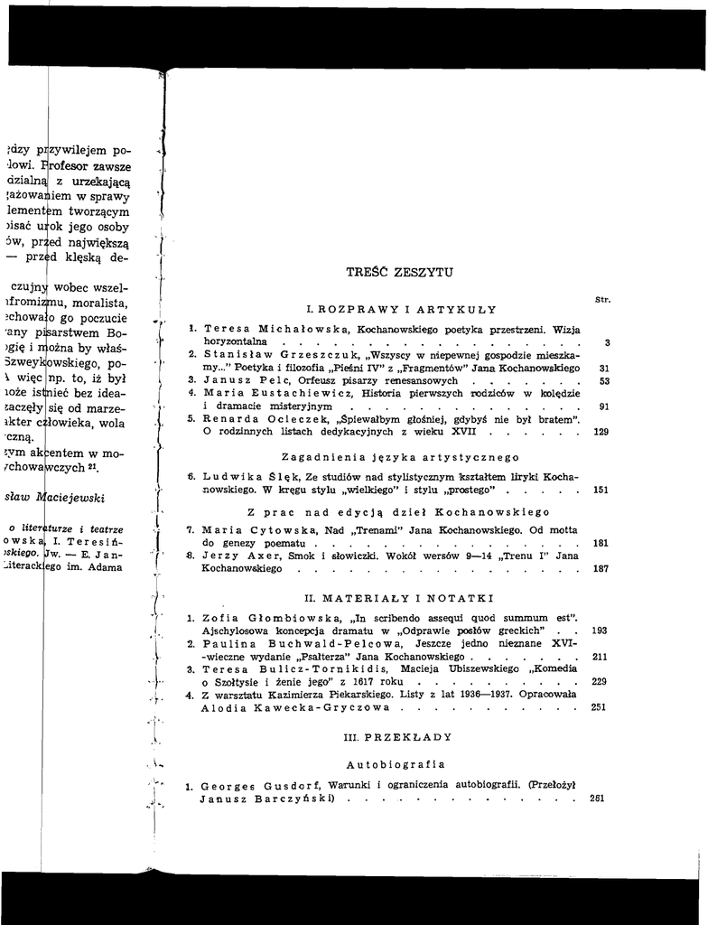 I. T e r e s a M i c h a l o w s k a, Kochanowskiego poetyka przestrzeni. Wizja