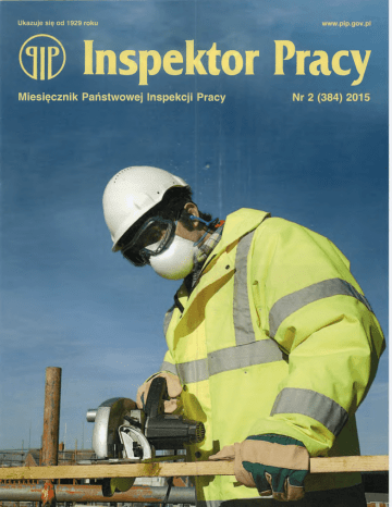 Ukazuje się od 1929 roku \ V Inspektor Pracy Miesięcznik Państwowej Inspekcji Pracy 15 Bhp w ciepłowniach 3 W SEJMIE RP 4 Wiadomości nie tylko z kraju 6 Stanowisko ROP 7 Prewencja na budowie fabryki VW 8 Jasny i wyczerpujący. Rozmowa z Teresą Liszcz, sędzią Trybunału Konstytucyjnego 11 Egzekucja obowiązków o charakterze niepieniężnym Opieka nad pracownikami ogranicza się w zasadzie do obliga toryjnych badań profilaktycznych. Ml 15 Bhp w ciepłowniach 18 Organizator pracy bezpiecznej 20 Z badaniami bezpieczniej 25 Eksploatacja maszyn w branży drzewnej 28 Zderzenie z rzeczywistością. Rozmowa z Jerzym Derpą, zastępcą okręgowego 20 z badaniami bezpieczniej inspektora pracy do spraw nadzoru w Okręgowym Inspektoracie Pracy w Bia łymstoku 36 31 Zimowa olimpiada 32 Z wizytą w Dreźnie 35 Biblioteka 36 Przygnieciony przez agregat Przygnieciony przez agregat Egzekucja obow iązków o charakterze niepieniężnym Wytoczenie powództwa przeciwko pracodawcy przez wszystkich pracowników, wobec których pracodawca został zobowiązany nakazem inspektora pracy do zapłaty świadczeń pieniężnych wynikających ze sto sunku pracy, uniemożliwia wszczęcie i prowadzenie egzekucji administracyjnej roszczeń objętych pozwem. Wydawca: Główny Inspektorat Pracy Redaktor prowadzący: Beata Pietruszka-Śliwińska. Redaktor techniczny: Jan Klimczak Adres: ul. Barska 28/30, 02-315 Warszawa, tel. 22 39 18 314 ISSN 0239-3417 Nakład: 1600 egz. Drukarnia: INYEST - DRUK Okładka: fot. 3M