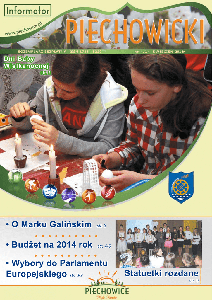 INFORMATOR PIECHOWICKI KWIECIEŃ 2014 EGZEMPLARZ BEZPŁATNY ISSN 1731 - 5220 nr 4/14 K W I E C I E Ń 2014r. Dni Baby Wielkanocnej str. 2 • O Marku Galińskim str. 3 • Budżet na 2014 rok str. 4-5 • Wybory do Parlamentu Europejskiego str. 8-9 Statuetki rozdane str. 9 INFORMATOR PIECHOWICKI KWIECIEŃ 2014 Piechowickie SUPER BABY rozdane Tegoroczne Dni Baby Wielkanocnej, organizowane już od 7 lat przez Piechowicki Ośrodek Kultury, wzbogacone zostały o nowe, ciekawe działania. Jednym z nich było wykonanie na ocenę przez każdy z zespołów, znanego, ludowego utworu „Jadą, jadą Mazury”. Wykonanie osobiście oceniał Burmistrz Miasta Piechowice p. Witold Rudolf, który jednocześnie był pomysłodawcą i fundatorem nagród SUPER BABY w tej muzycznej zabawie. Kolejnym była propozycja wokalna dla odważnych. Każdy z obecnych mógł wystąpić na estradzie w solowym wykonaniu utworu „Piejo, piejo kury”, pochodzącego z płyty Grzegorza Ciechowskiego zatytułowanej OJDADANA. Nagrodą za udział w tym ludowym karaoke, śpiewano bowiem równolegle z oryginalnym nagraniem, były pakiety podarunkowe papieru higienicznego ufundowane przez WEPA S.A. Piechowice. Chętnych nie brakowało a jeden z wykonawców był zdecydowanie lepszy od oryginału. Oprócz nowinek na Dniach Baby Wielkanocnej nie zabrakło jak zwykle pięknych pisanek, czeskich pierniczków i polskich ciast wielkanocnych, żywych baranków i czubatych kurek. Dużym zainteresowaniem cieszyły się warsztaty polskiej i czeskiej pisanki woskowej prowadzone już tradycyjnie przez Krystynę Kowalik i Katerinę Jinovą, warsztaty plastyczne „zwierzątko do twojego koszyczka” oraz przepiękne prace konkursowe wystawione w ramach konkursu „ Pisanka Wielkanocna”. Podziwiano też haftowane arcydzieła Romana Ćwiąkały, które prezentowane są w galerii wystawowej POK. Wernisażem wystawy pt. „ Biografia na kanwie zapisana”, autorstwa Romana Ćwiakały, rozpoczęto w sobotę (12 kwietnia) piechowickie święto sztuki ludowej. Gromkie brawa towarzyszyły przez dwa dni również wszystkim artystom estrady, na której zaprezentowały się w fokowym repertuarze zespoły: Echo, Wojcieszowianki, Kowarskie Wrzosy, Gościniec, Szklarki, Chabry, Sokolik, Szarotki, Rybniczanki i Karkonosze. Najdłużej jednak oklaskiwano ciekawe występy artystyczne dzieci z piechowickich przedszkoli oraz doskonałą, młodą wokalistkę Natalię Lis, reprezentującą Piechowicki Ośrodek Kultury. Jednak w całej tej świątecznej i radosnej atmosferze, pachnącej pysznym żurem, razowcem i babami wielkanocnymi z piekarni UliJanka, pojawiły się chwile trudne. Był to czas oceny przez jury konkursowe pisanek zgłoszonych do konkursu My dajemy z siebie 100% „Pisanka Wielkanocna”. Spośród 37 zaprezentowanych prac jury, którego przewodniczącą została p. Zofia Czernow, posłanka na Sejm Rzeczpospolitej Polskiej, musiało wybrać 9 najciekawszych i najpiękniejszych piankowych kompozycji. Naprawdę było to trudne i niewdzięczne zadanie. Wszystkie prace cechowała piękna kolorystyka i wielka dokładność wykonania. Każda z prezentowanych pisanek lub kompozycji wymagała dużego nakładu pracy oraz anielskiej cierpliwości. Zwycięzcami zostali autorzy najbardziej oryginalnych pomysłów, takich jak np. wielka, bogato zdobiona pisanka upieczona z ciasta, pisanki i baranek z makaronu, kwoka wysiadująca pisanki czy też pisanki zdobione woskiem nanoszonym punktowo, którego ślady tworzą misterne, koronkowe wzory. Na liście laureatów konkursu „Pisanka Wielkanocna” znaleźli się, w kategorii pisanka rodzinna: I miejsce – Aleksander Bukała, II miejsce – Marcel Skiba, III miejsce – Tomasz Bukała, wyróżnienie – grupa KOTKI z przedszkola nr 2 w Piechowicach; w kategorii pisanka indywidualna: I miejsce – Adam Kulikowski, II miejsce – Ryszard Glegoła, III miejsce – Agnieszka Pijar, wyróżnienie – Monika Stołek, wyróżnienie – Kinga Janoszczyk. Przewodniczącą jury była Pani Poseł Zofia Czernow, która również wręczała nagrody. Zwycięzcom serdecznie gratulujemy, a wszystkim uczestnikom dziękujemy za udział w konkursie, życząc sukcesów na przyszłość. Sukcesem jednak można nazwać już sam fakt uczestnictwa w Dniach Baby Wielkanocnej. Jest to bowiem wydarzenie, z którego każdy może wyjść obdarzony dobrą energią i optymizmem, które niesie ze sobą obcowanie z pięknem i radością polskiej sztuki ludowej. Anna Kalisz, dyrektor POK-u Dyrektor i pracownicy Piechowickiego Ośrodka Kultury składają serdeczne podziękowania za pomoc i wsparcie w organizacji imprezy Dni Baby Wielkanocnej p. Krystynie Kowalik, p. Romanowi Kuźmińskiemu, p. Januszowi Brylińskiemu – Prezesowi przedsiębiorstwa WEPA S.A. Piechowice, p. Witoldowi Rudolfowi – Burmistrzowi Miasta Piechowice oraz zespołowi Szklarki. Jednocześnie, z okazji Świąt Wielkanocnych, składamy wszystkim mieszkańcom Piechowic oraz gościom i turystom najserdeczniejsze życzenia pogodnych, radosnych i bogatych wiarą świąt. 2 maja 2014r. godz. 16.30 1% Akademia M a jowa W programie: Wspieraj¹c Piechowick¹ Ochotnicz¹ Stra¿ Po¿arn¹, ratujesz ¿ycie i mienie swoje oraz swoich najbli¿szych. 1% podatku – to pomoc, która NIC nie kosztuje darczyñcê. I. WNIOSEK O PRZEKAZANIE 1% PODATKU NALE¯NEGO NA RZECZ ORGANIZACJI PO¯YTKU PUBLICZNEGO 123 Numer KRS sala OSP Piechowice KRS 0000 116 212 J. INFORMACJE UZUPE£NIAJ¥CE 125 Cel szczegó³owy 1% Ochotnicza Stra¿ Po¿arna, 58-573 Piechowice, ul.Szkolna 4 Dziêkujemy 16.30-17.45 – Uroczysta akademia z okazji uchwalenia Konstytucji 3-Maja,w której m. in. wystąpią: Chór Harfa, Orkiestra Dęta OSP Piechowice, zespół Szklarki, młodzież szkolna i przedszkola. 17.45-18.00- przemarsz orkiestry oraz uczestników akademii do kościoła pw. Św. Antoniego 18.00-19.00- msza święta za ojczyznę. Atrakcje dodatkowe: 15.30-16.30 – „biało-czerwone” zabawy plastyczne dla dz