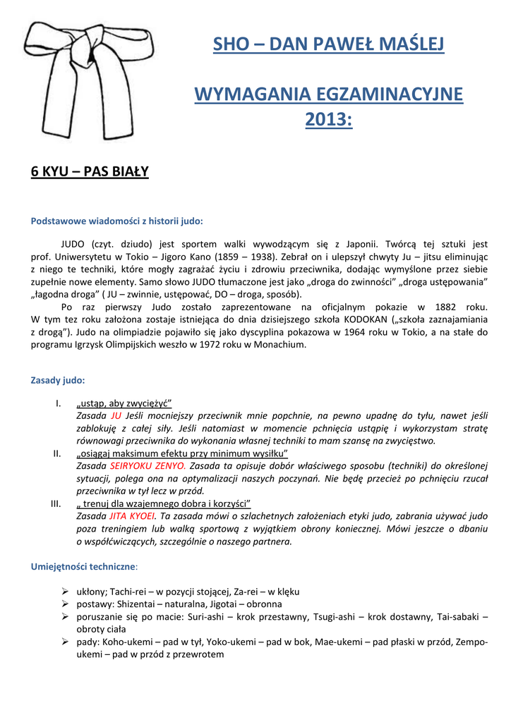 SHO – DAN PAWEŁ MAŚLEJ WYMAGANIA EGZAMINACYJNE 2013: