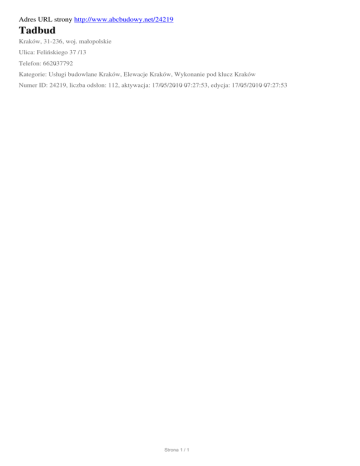 Tadbud, Krakow, Felinskiego 37 /13