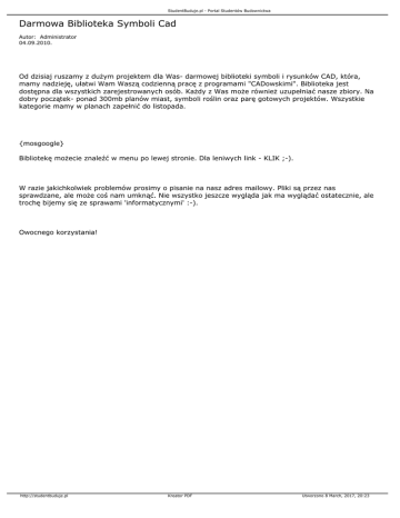 mamy nadzieję, ułatwi Wam Waszą codzienną pracę z programami "CADowskimi". Biblioteka jest