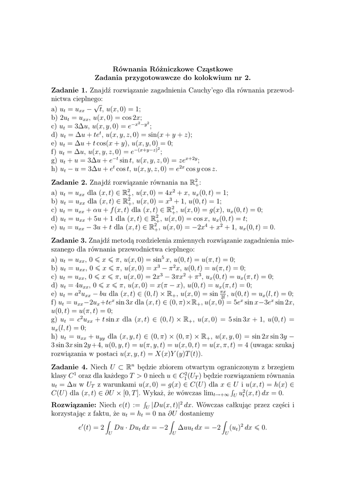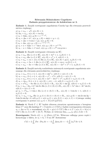 Równania Różniczkowe Cząstkowe Zadania przygotowawcze do