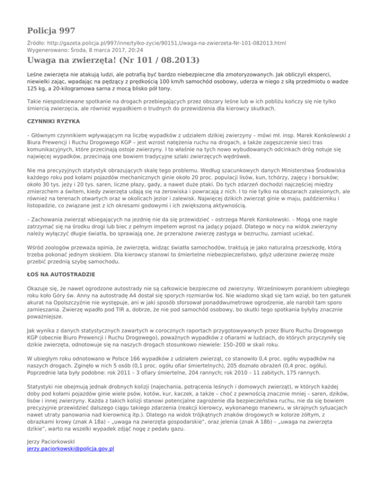 Policja 997 Uwaga na zwierzęta! (Nr 101 / 08.2013)