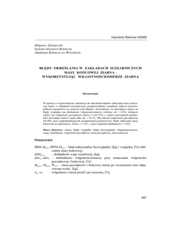 W literaturze brak jest analizy błędów w przypadku suszarnictwa ziarna zbóŜ, gdy