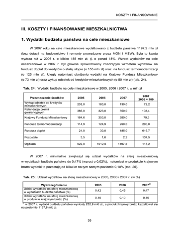 III. KOSZTY I FINANSOWANIE MIESZKALNICTWA 1. Wydatki bud