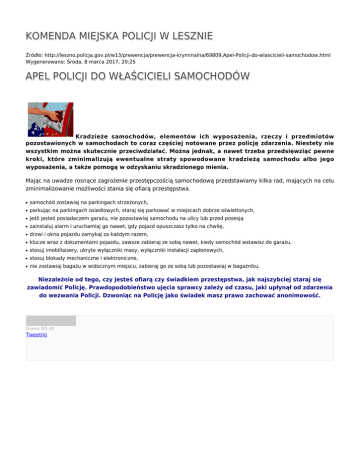 KMP LESZNO APEL POLICJI DO WŁAŚCICIELI SAMOCHODÓW