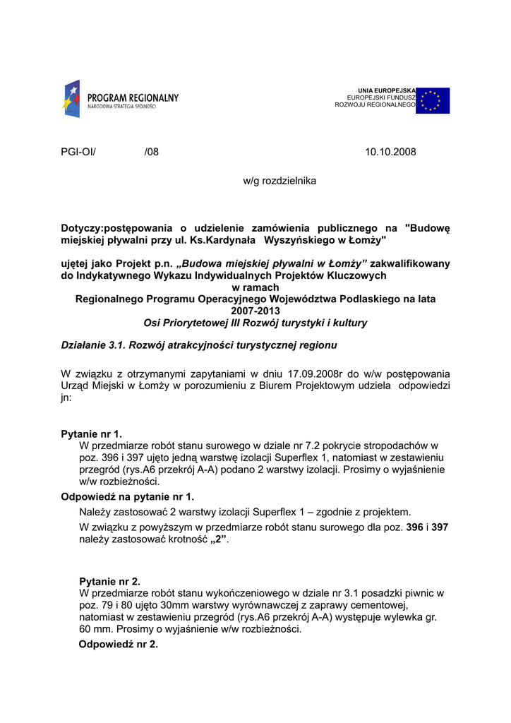 Odpowiedzi na pytania udzielone w dniu 10.10.2008 r.