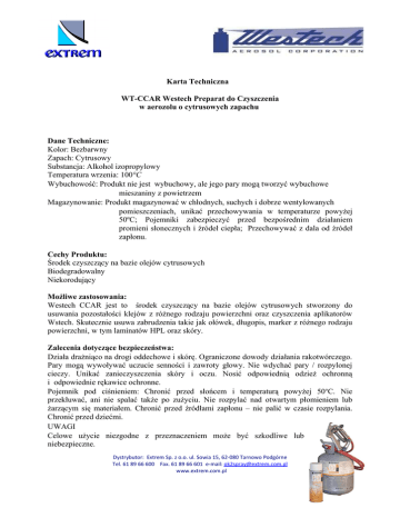 Karta Techniczna WT-CCAR Westech Preparat do Czyszczenia w